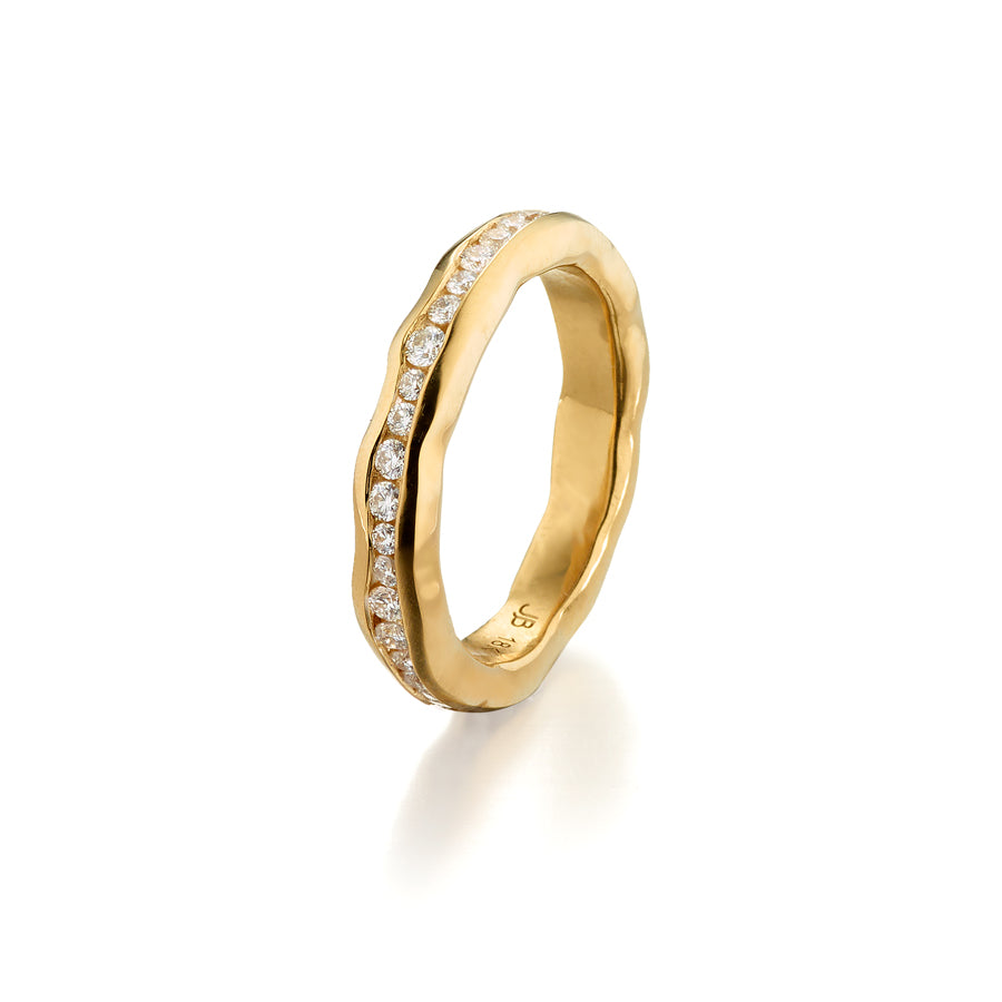 Ocean inspired 18k gold and diamond ring is set with 2mm white diamonds.