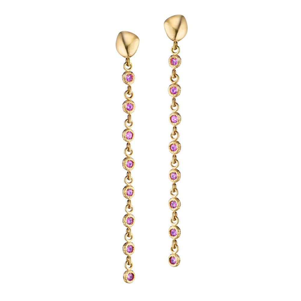 Opulent 18k gold earrings showcase rose-cut sapphires of a deep ocean blue.